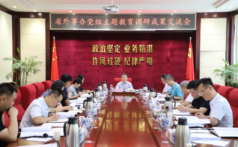 7月18日下午,省外事办党组召开主题教育调研成果交流会,党组书记、主任董晓林主持,省委主题教育第十五巡回指导组高敏、常永红,省外事办党组成员、副主任马斅民、梁淑娟、韩泰凡,省对外友协专职副会长李彦,省人大代表、省政协委员、服务对象和基层职工代表等参加会议。
