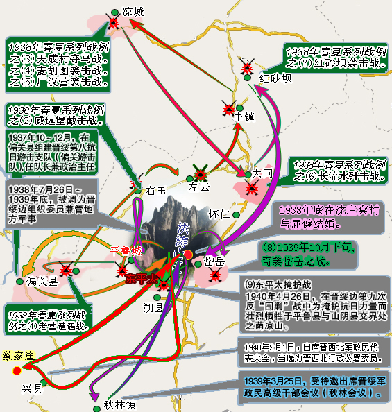 该点位于山阴县玉井镇沈庄窝村(时属右玉县)王展元旧宅,展现的是李林与屈健在此结婚的烽火伉俪史实。